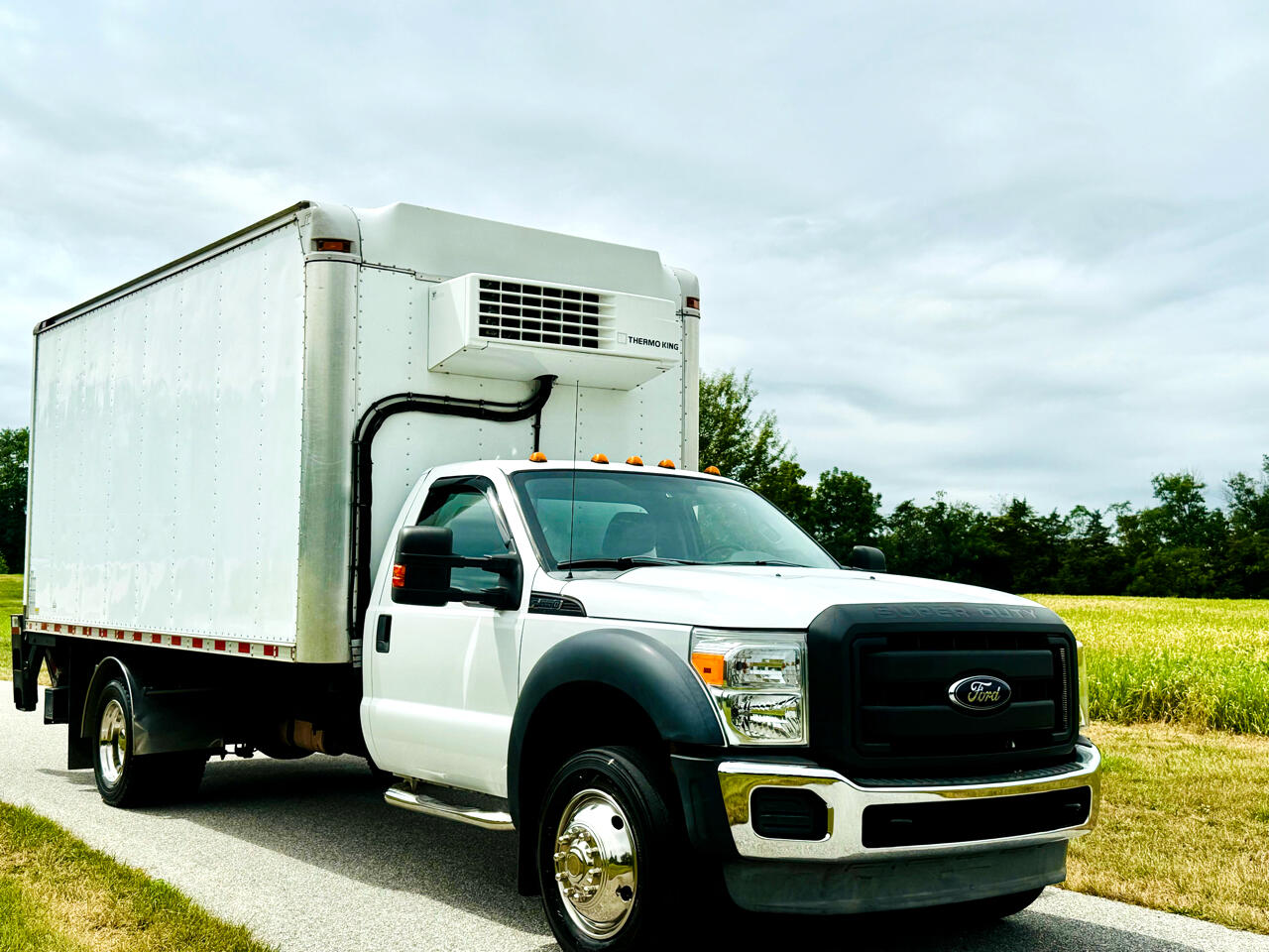 2012 FORD F550 REG CAB XL,6.8L V10,5 SPEED AUTOMATIC,ALL POWER OPTIONS,CRUISE CONTROL,HEATED MIRRORS,4.88 LIMITED SLIP AXLE,PAYLOAD PLUS UPGRADE,19500 GVWR,16FT SUPREME ALUMINUM BOX,THERMO KING V-520 DIRECT DRIVE REFRIGERATION UNIT,WALTCO POWER LIFT GATE,ONE OWNER, ALL BOOKS AND KEYS.